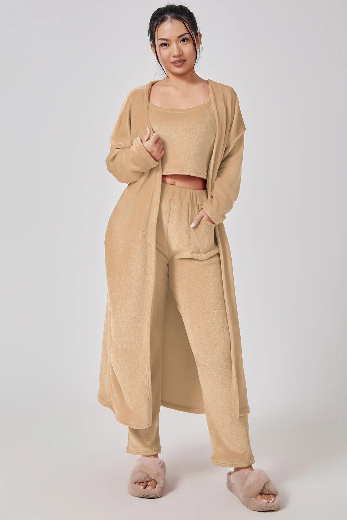 Découvrez notre Pyjama 3 Pièces Douillet, l’ensemble parfait pour transformer vos moments de détente en expérience luxueuse.
