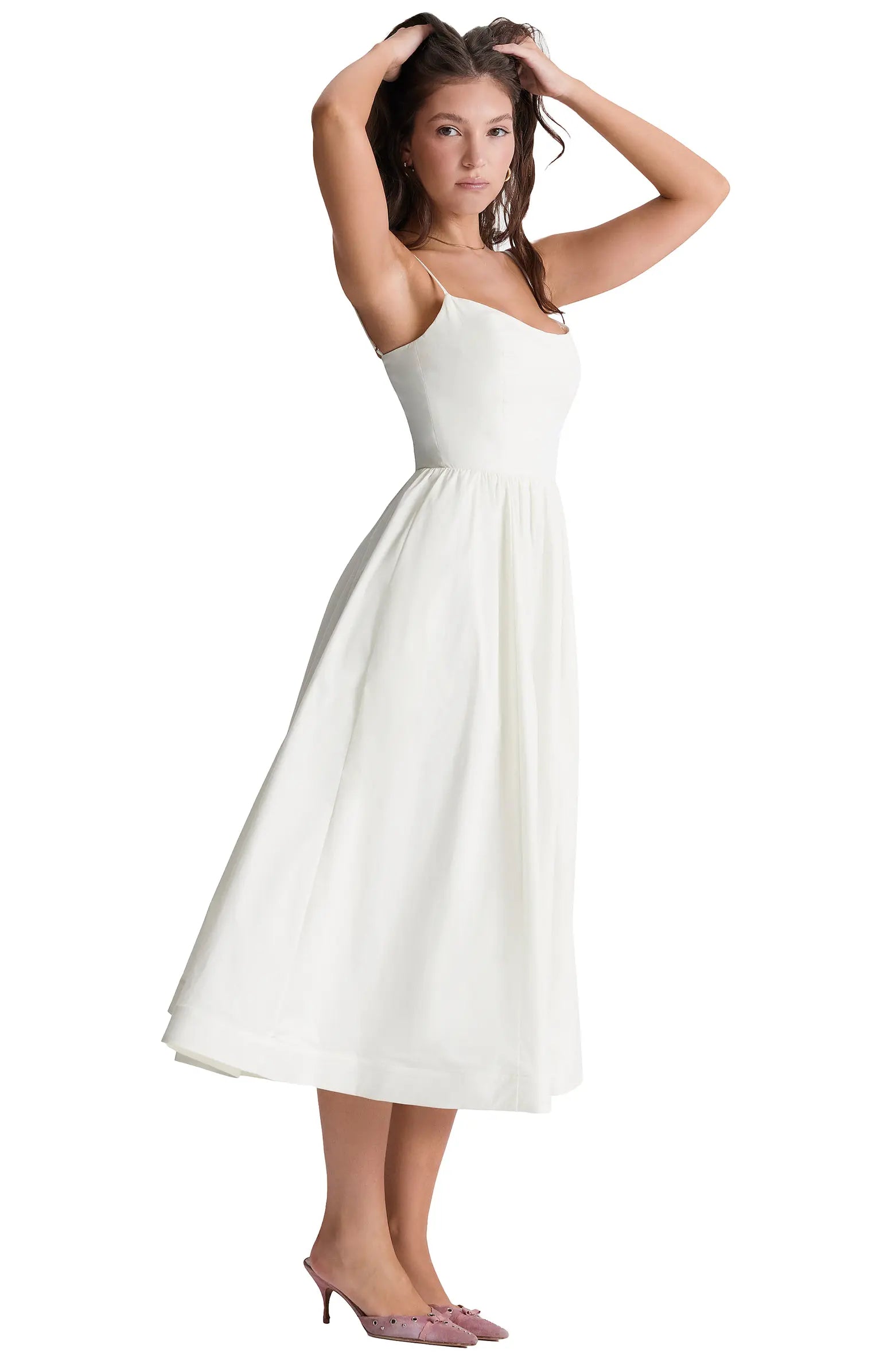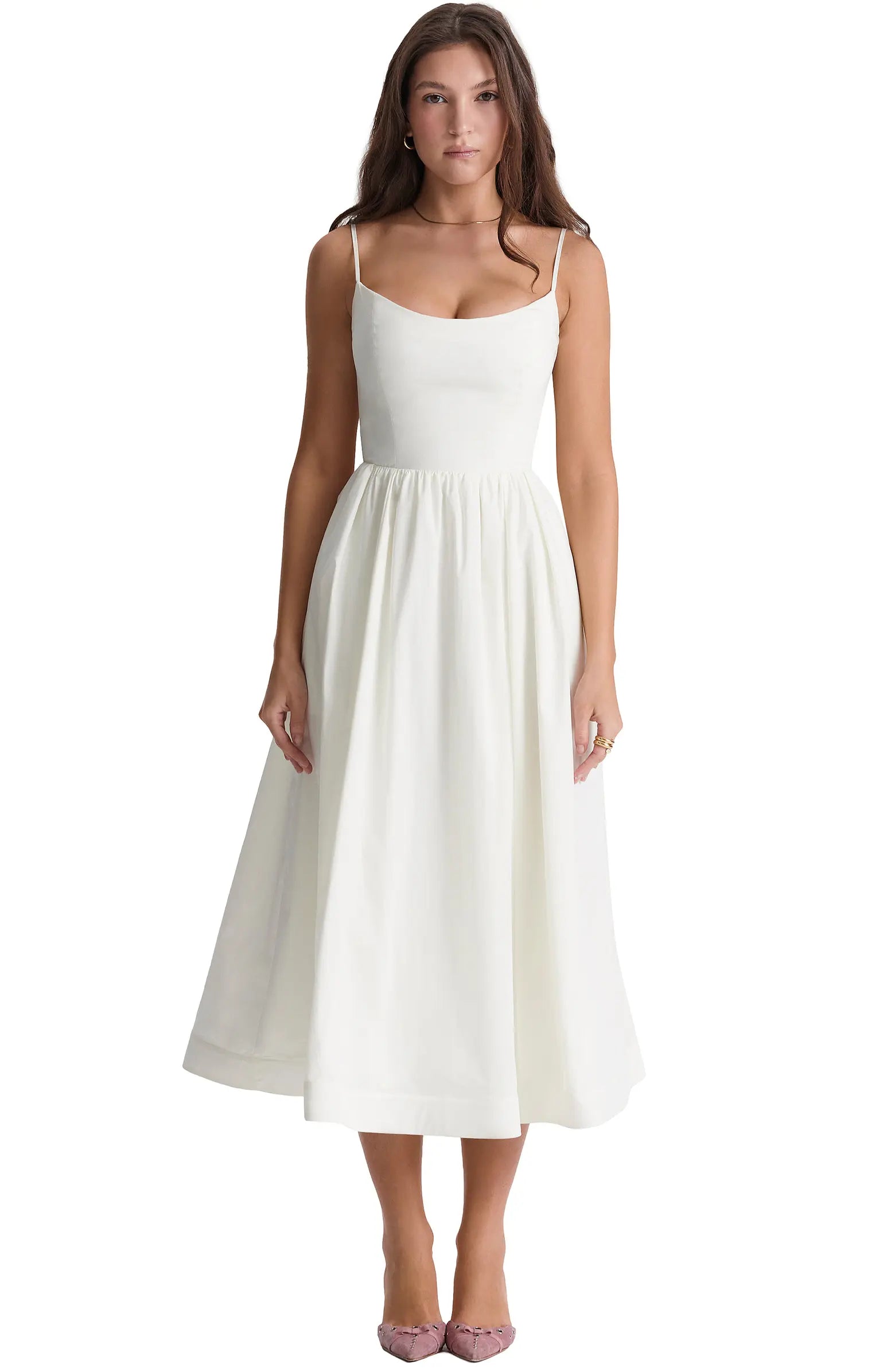 - Bretelles portées classiquement pour un look sweet.