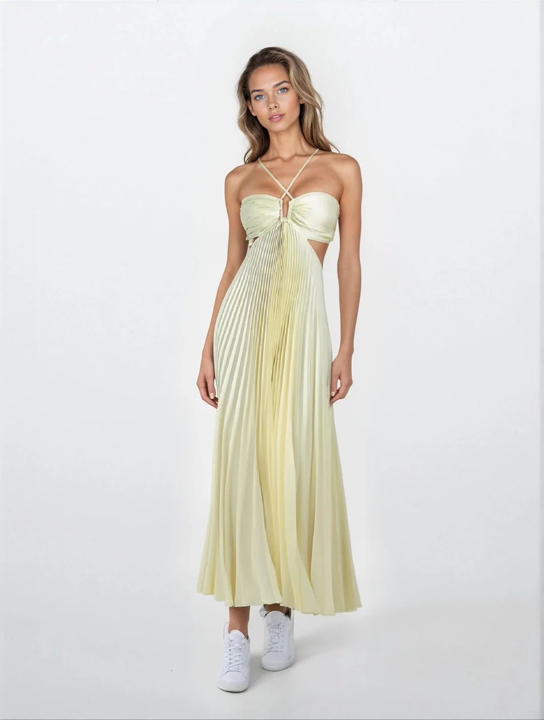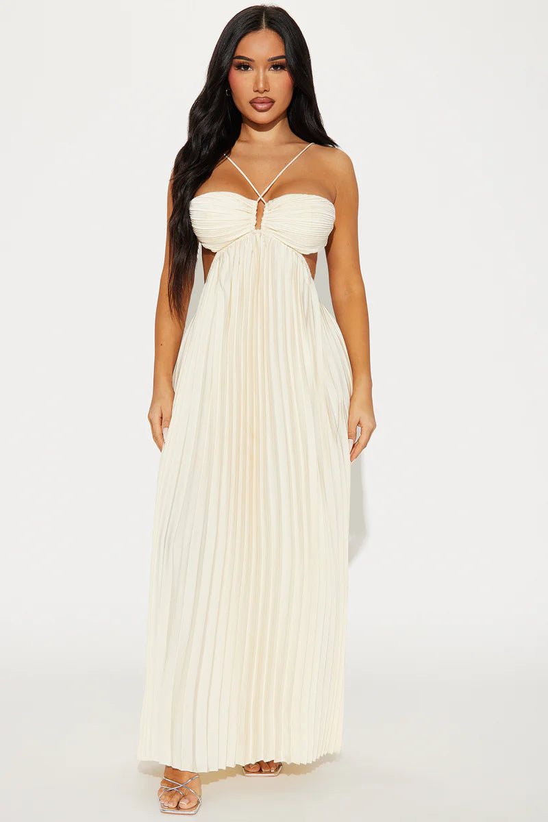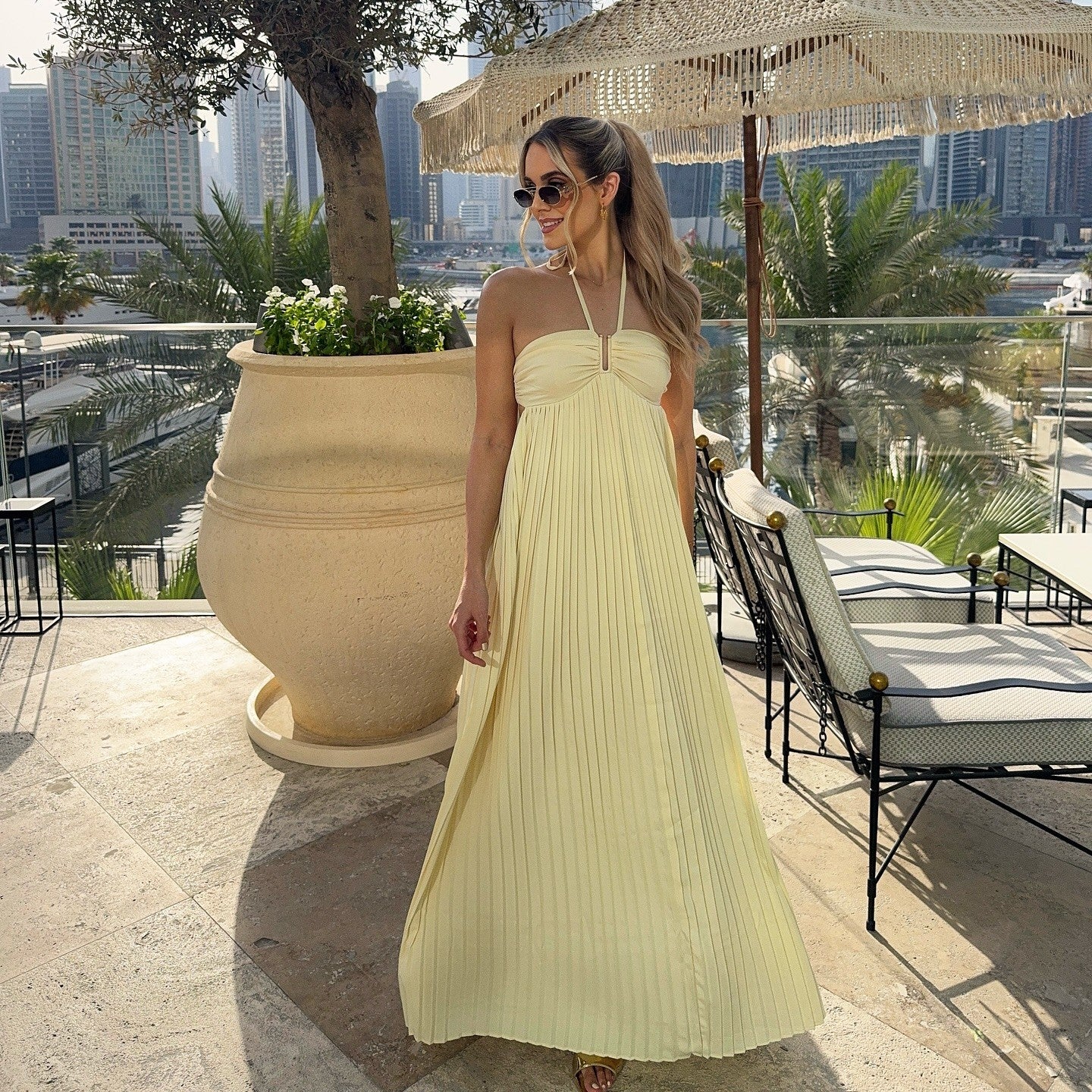 Découvrez notre Robe Sling Sans Manches à Pliés Sophistiqués, une pièce intemporelle qui marie élégance et légèreté pour une silhouette gracieuse et féminine.