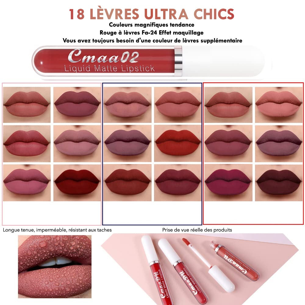 Rouge à Lèvres Mat Waterproof, Anti-Adhérent et Longue Tenue
